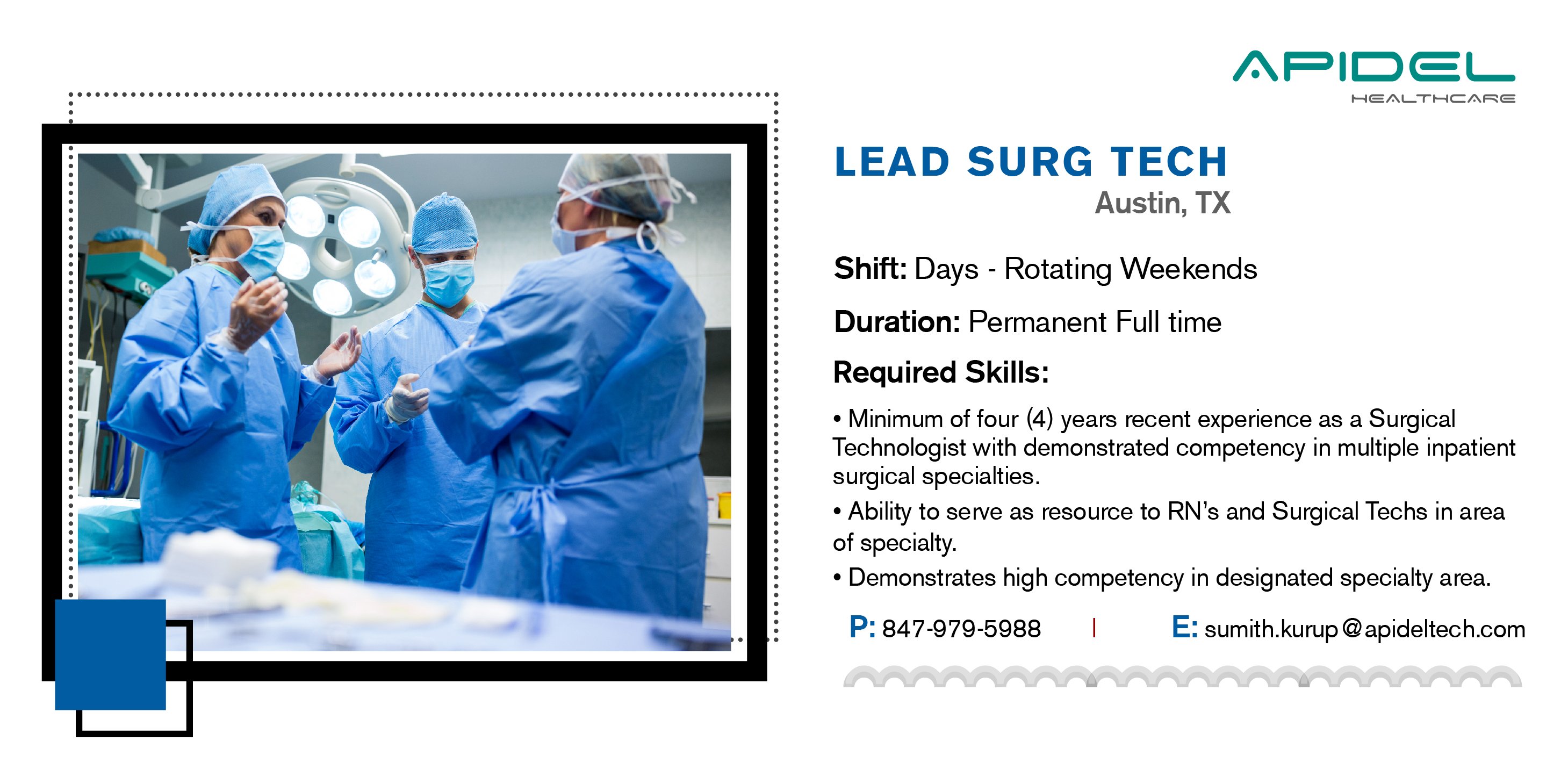 This is 6 lower -3101 than the average surgical technologist cst. The Lead Surgical Tech I salary range is 47713 to 61230 in Austin Texas. Salary ranges can vary widely.